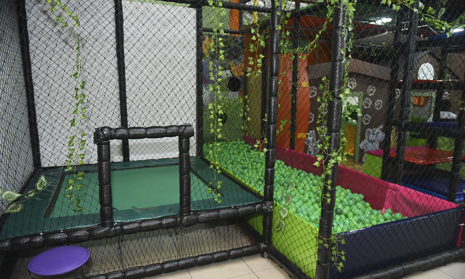 Amplo espaço refrigerado com ar condicionado, preenchido com as mais empolgantes atrações para trazer muita alegria para a festa. Ambiente integrado onde os convidados ficam juntos no mesmo ambiente e podem ver as crianças o tempo todo. O espaço comporta 150 pessoas.